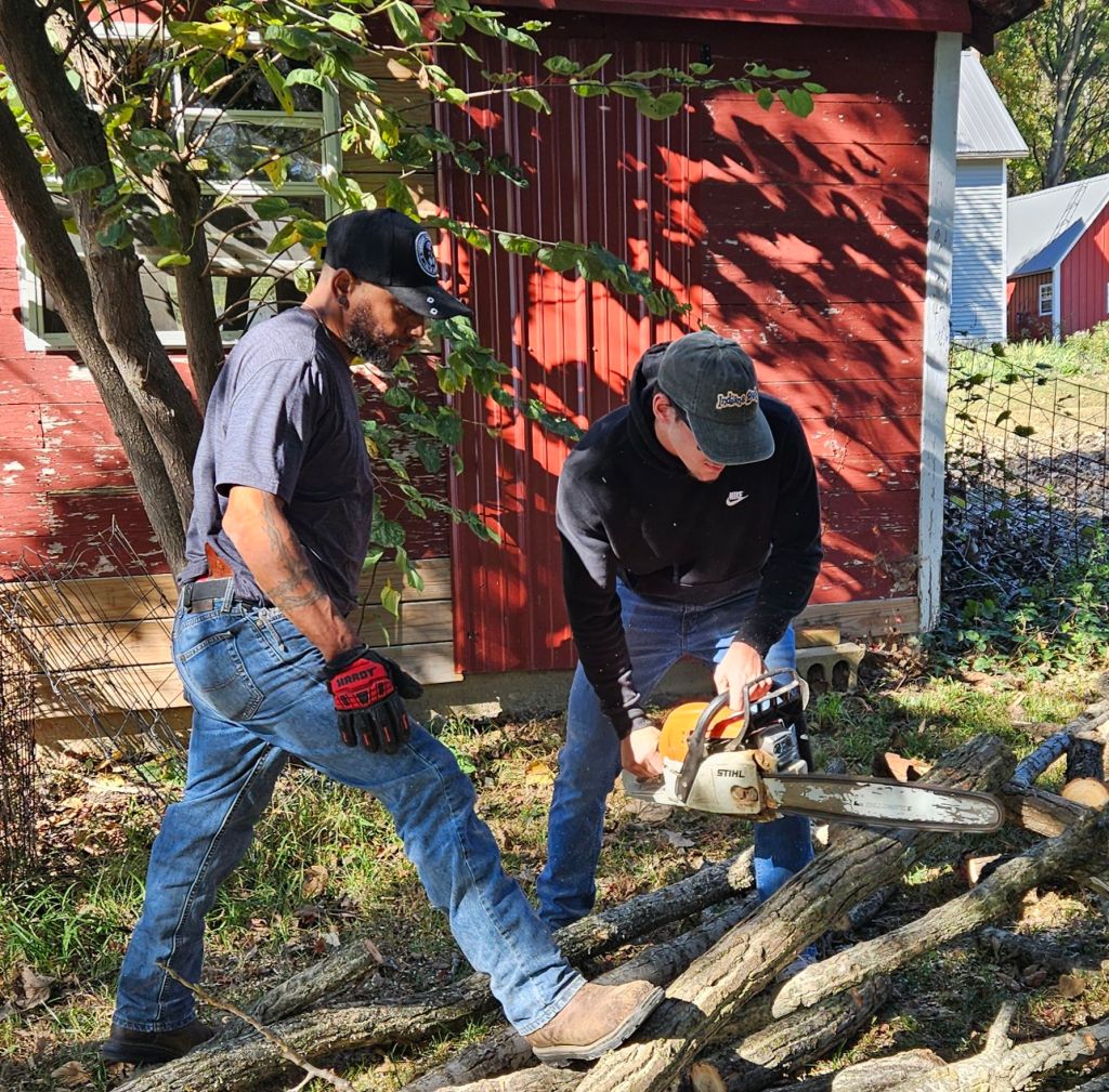 This wood was is so wet that it was literally shooting out little squirts of water when they tried to split it with the maul. It will hang out in the back pasture for the next couple of years as the seasons age it and dry it out. Then we will haul it in and use it for heat!