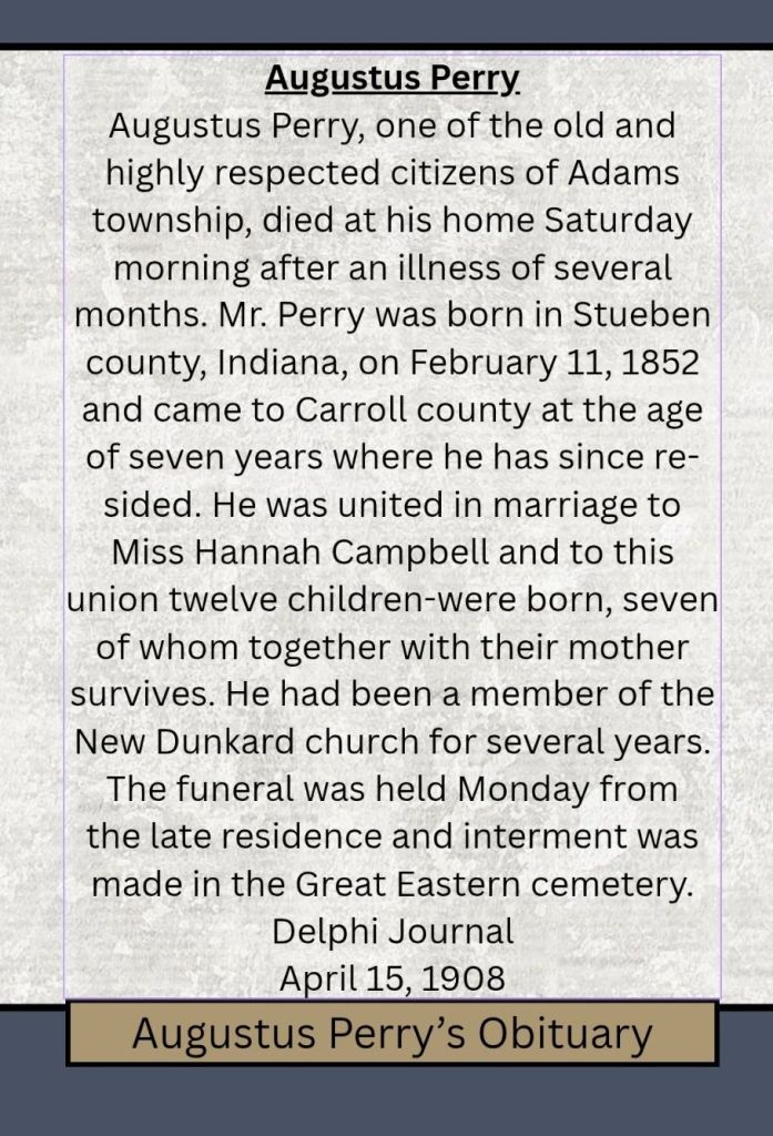 According to census records, it would appear around 1890, Augustus and Hannah moved into the Brick House and officially took over the management of the Carroll County farm while Francis “Frank” Perry leaned more into the White County property.