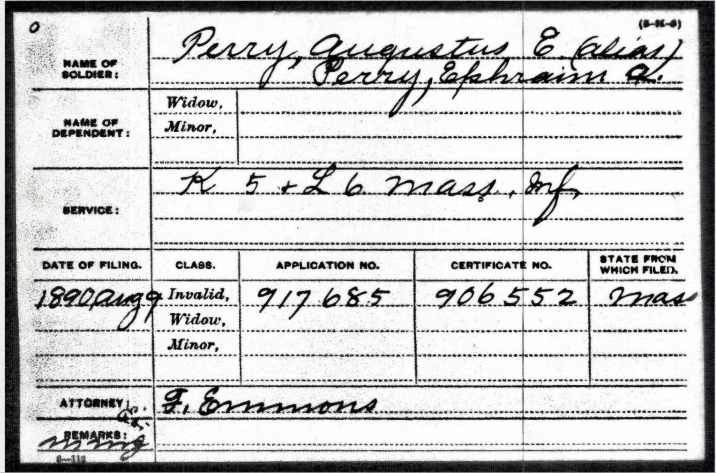 This entry is peculiar in the fact that it was entered into a Massachusetts muster roll with a litany of other Perry family members who were all enlisting at the same time from the region which Edwin’s family of origin had come in the early 1800’s.